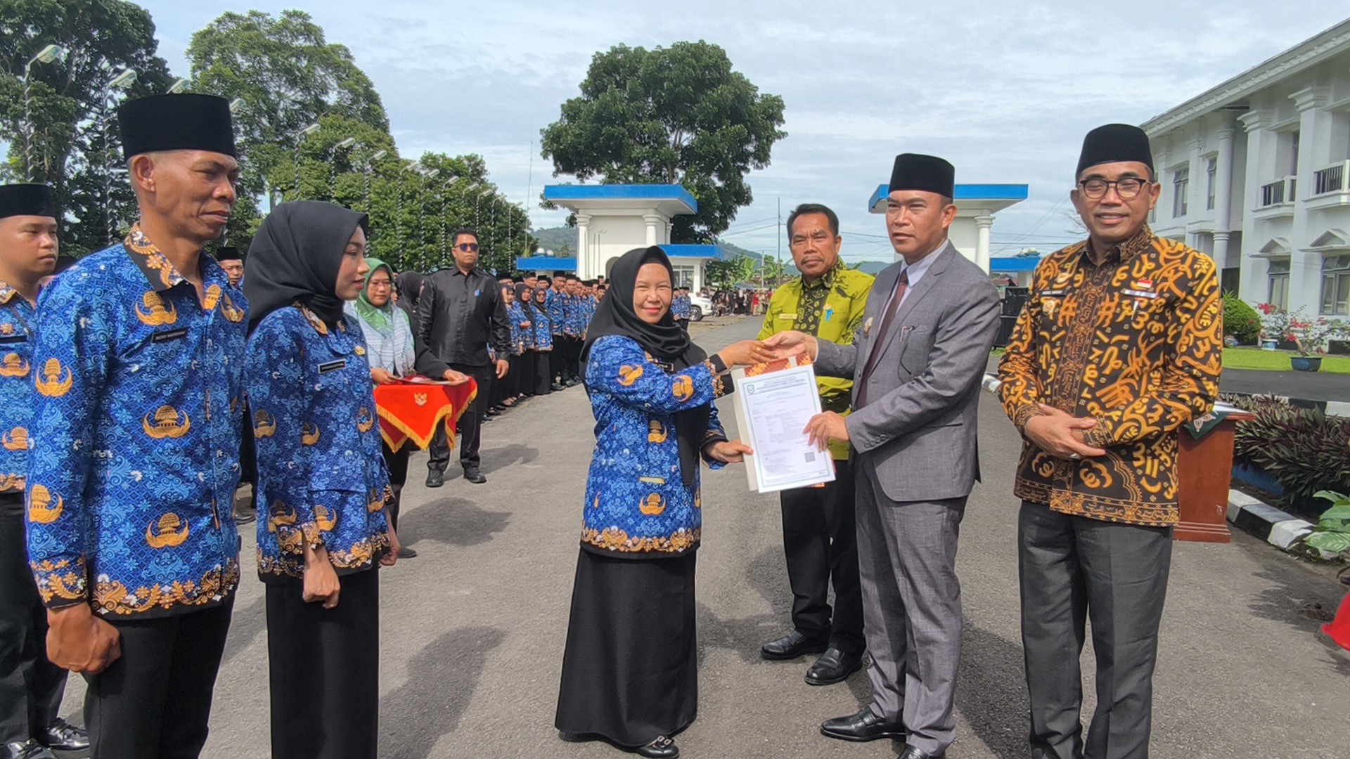 KEPAHIANG– Bupati Kepahiang, H. Zurdi Nata, menyerahkan Surat Keputusan (SK) kepada 691 Pegawai Pemerintah dengan Perjanjian Kerja (PPPK) paruh waktu di halaman Kantor Bupati Kepahiang, Jumat (12/12/2025).